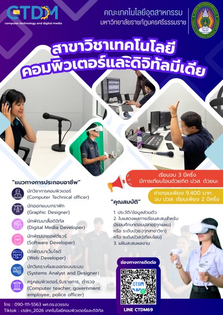 ทำความรู้จักสาขาเทคโนโลยีคอมพิวเตอร์ได้หลากหลายช่องทาง ยินดีให้ข้อมูล สนใจท...อ่านต่อ