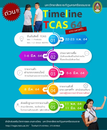 | หัวข้อข่าว | แจ้ง TimeLine การรับสมัครแบบ TCAS ปีการศึกษา 2564 |